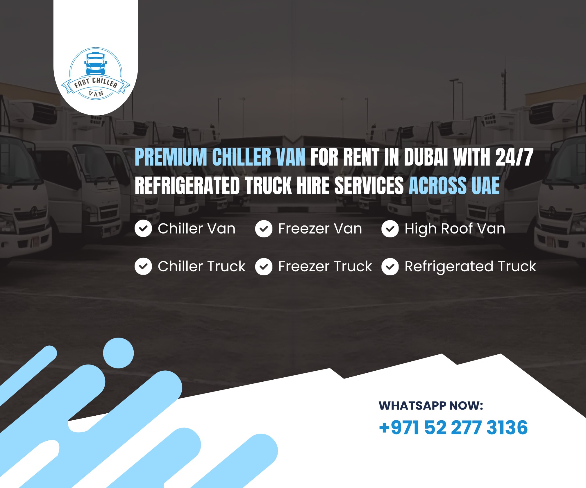 Fast Chiller Van offers premium chiller van for rent in Dubai and across the UAE, ensuring reliable temperature control for food, flowers, and pharmaceuticals. Our fleet includes chiller and freezer vans — available in both high-roof and standard-roof models — with driver or self-drive options starting from AED 250/day.